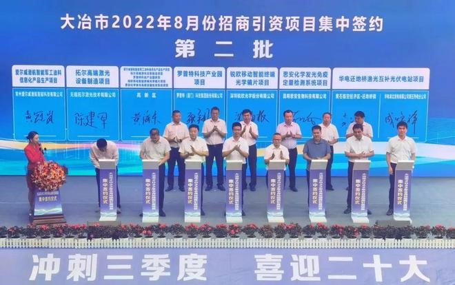 近日,大冶市委市政府舉行招商引資8月項(xiàng)目集中簽約活動(dòng),總投資102.35億元的15個(gè)項(xiàng)目集中簽約。此次簽約的15個(gè)項(xiàng)目,涉及智能裝備制造、電子信息、新能源等多個(gè)領(lǐng)域。其中,工業(yè)項(xiàng)目14個(gè),農(nóng)業(yè)項(xiàng)目1個(gè);50億元以上項(xiàng)目1個(gè),10億元(含)至50億元項(xiàng)目1個(gè),5億元(含)至10億元項(xiàng)目4個(gè)。
