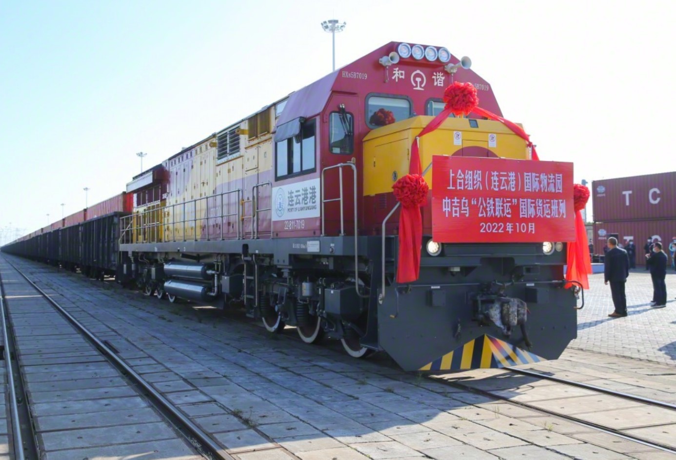 10月13日,江蘇首列中吉烏“公鐵聯(lián)運”國際貨運班列在上合組織(連云港)國際物流園鐵路場站發(fā)車。這條“公鐵聯(lián)運”國際貨運線路打通了上合物流園至塔什干物流樞紐大動脈。